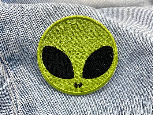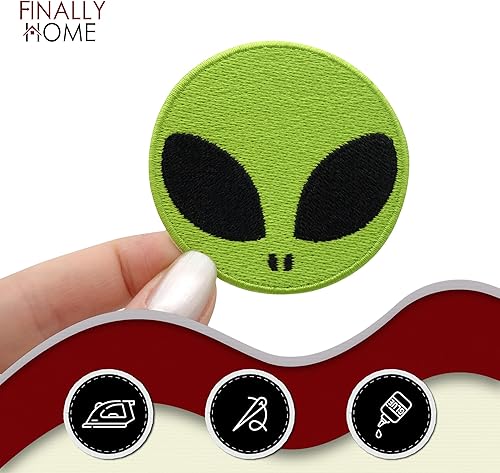 Finally Home Écusson Thermocollant | Petite tête d'extraterrestre ronde | Patch à coller au fer à repasser ou à coudre | Pièce de décoration ou réparation pour vêtement, jean, sac, pantalon, veste