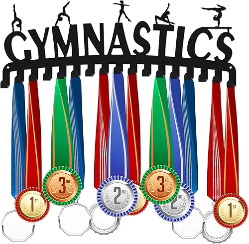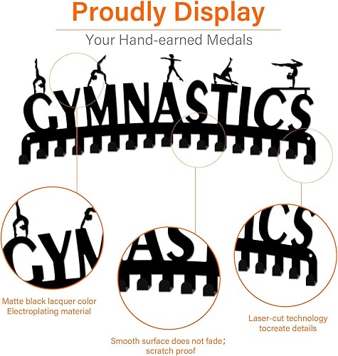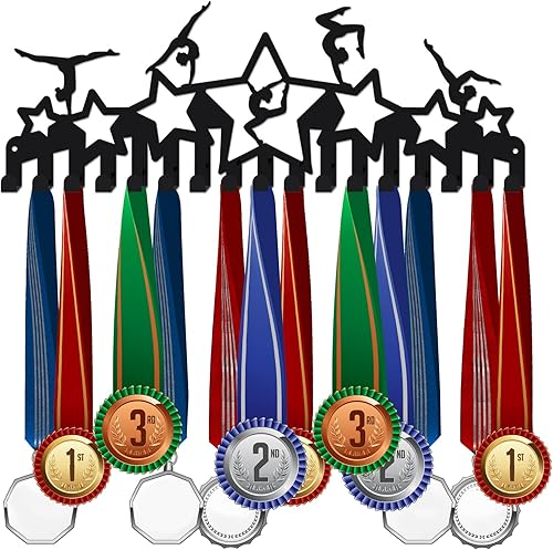 SUPERDANT Gymnastique Porte Medaille Étoiles Porte Médaille Présentoir Cintre Sports Métal Support Medaille avec 17 Crochets Suspendus Médaille Support pour Medaille 40x15cm