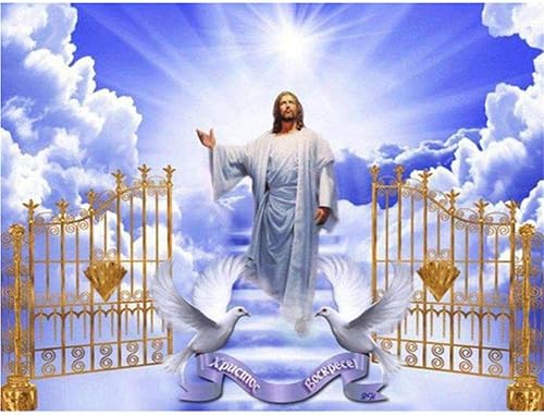 DIY Mosaique Broderie Diamant Complet Plein 5D par Numéro Jésus Toile Peinture Deco Enfant Diamond Painting Strass Complet décoration à la Maison/Salon/Chambre/Bureau 40X30cm