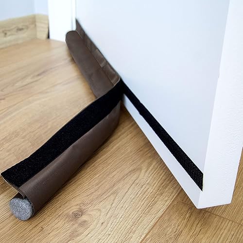 Boudin de porte de 96 cm - Bloque les courants d'air en bas d'un côté - Découpable sous l'isolateur de porte - Résistant aux intempéries - Insonorisant - Pour intérieur et extérieur (marron)
