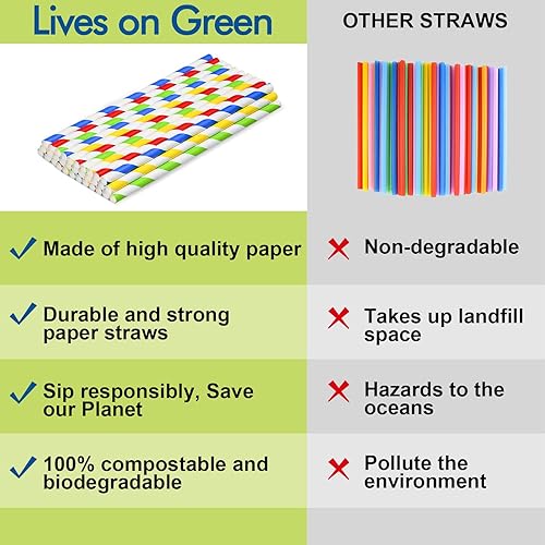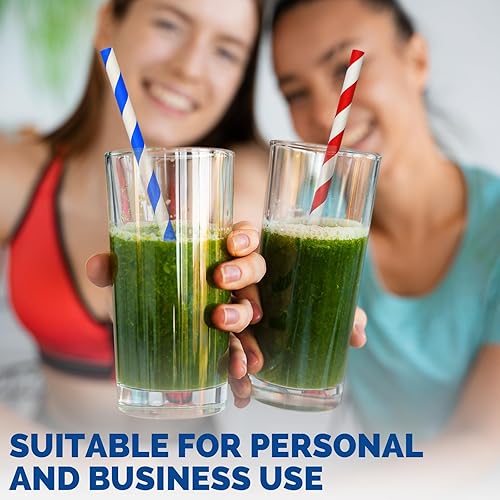 Pailles en papier jetables de 8mm, 19,7cm, rayures colorées – pour milkshakes, glaces, smoothies, boissons épaisses – 200 unités