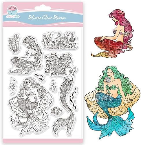 GLOBLELAND Tampons Transparents Sirène Poisson Océan Tampons Transparents en Silicone Coquillages de Corail pour Bricolage Scrapbooking Fabrication de Cartes Album Photo Journal