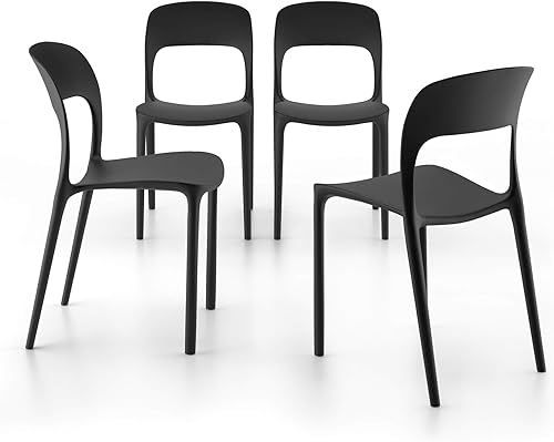 MOBILI FIVER, Chaise Amanda, Lot de 4, Noir, Polypropylène, Chaise pour Cuisine, Jardin, Salon