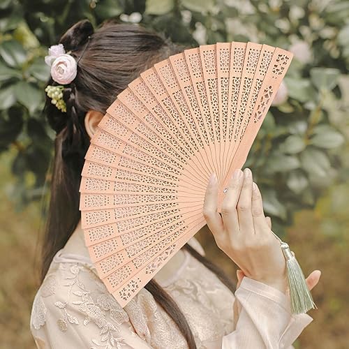 Leling Éventail en santal, style ancien, éventail pliable en bois, accessoires d'été, éventails en bois parfumés pour décoration mariage, maison, cadeaux d'anniversaire