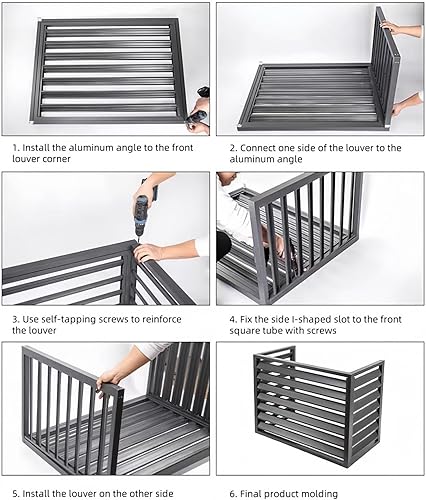 Clôture de climatiseur en Aluminium 4 Panneaux, Protection de condenseur pour l'extérieur, pour Cacher Le climatiseur et préserver l'intimité extérieure (Gris, 110 cm)