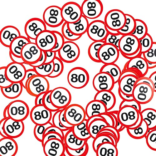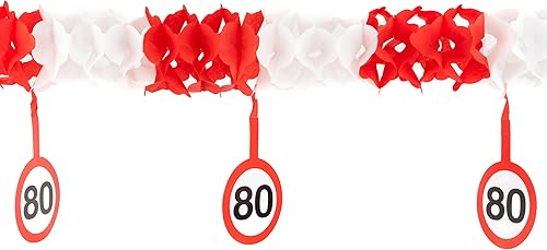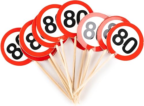 Decoration anniversaire 80 ans piques de fête panneau de signalisation rouge/blanc - Décoration originale pour 80 ans anniversaire homme et femme - Tiwoca