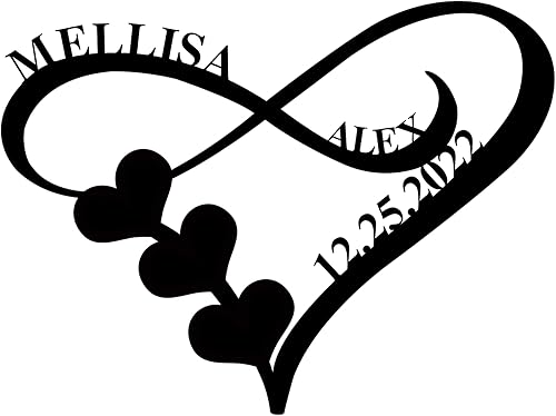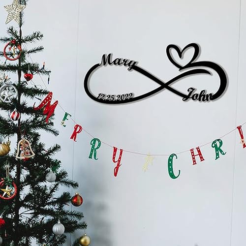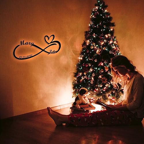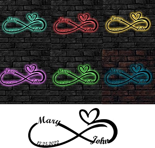 Jinlinjew Signe en métal Infini personnalisé avec lumières LED Signe de Coeur Décoration Murale en métal Décoration extérieure Cintre de Porte d'entrée Nom personnalisé Date Porte Décoration Murale