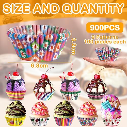 POWZOO 900 Pièces Caissettes à Cupcakes en Papier de Fête, Moule Cupcake Standard 6.8 * 3.2cm, pour Mariage, Dessert, Fête, Gobelets pour Gâteaux