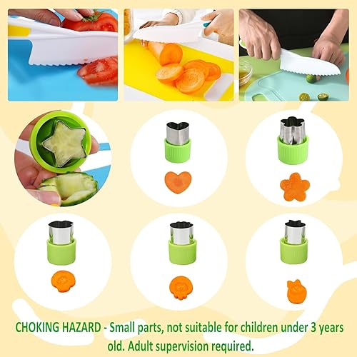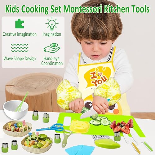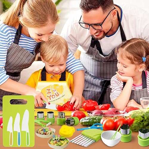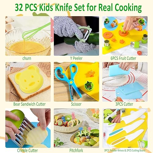 Coriver Kit Couteau Cuisine Enfant, 32 pièces Couteau Montessori Enfants avec Ondulé et Planche à Découper, Plastique Ustensile Cuisine Enfant pour Couper des Fruits ou Légume