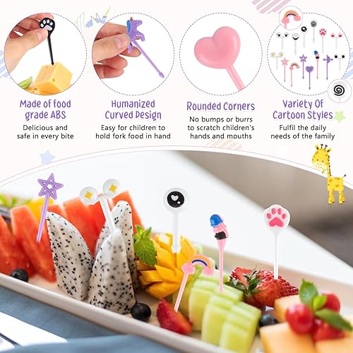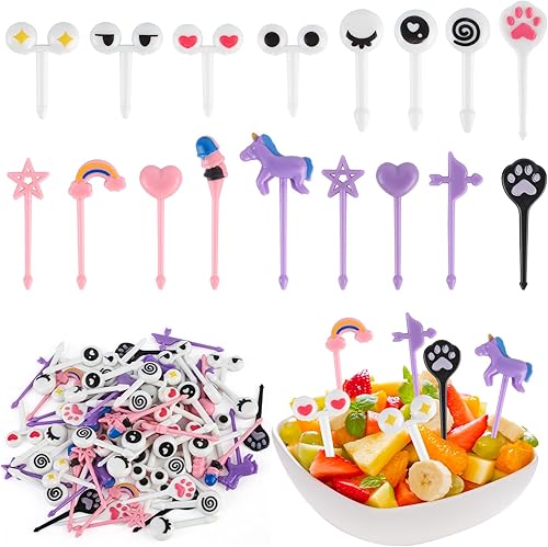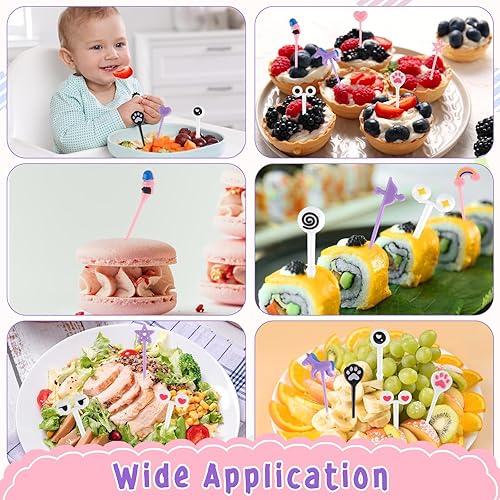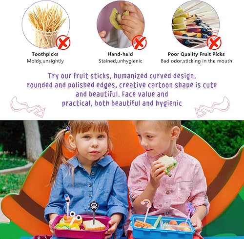 Kayqbonke Lot de 72 fourchettes à fruits pour enfants - En plastique - 15 mini brochettes à fruits - Pour boîte à déjeuner, fête, thé de l'après-midi