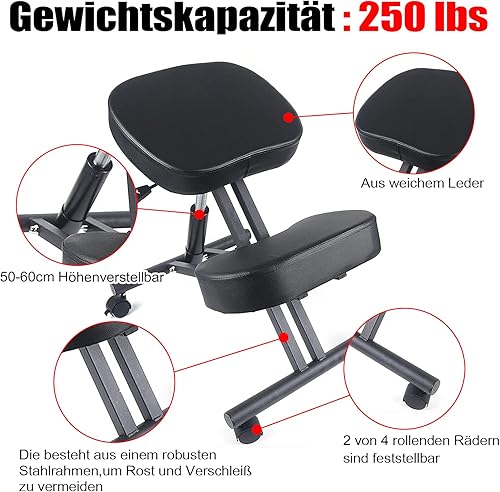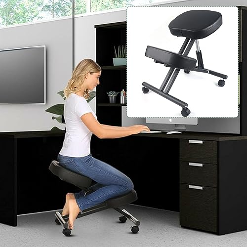 OUKANING Chaise Ergonomique à Genoux Tabouret réglable en Hauteur Chaise à Genoux avec roulettes Siège Formant Le Corps Chaise de Posture à Genoux pour la Maison et Le Bureau