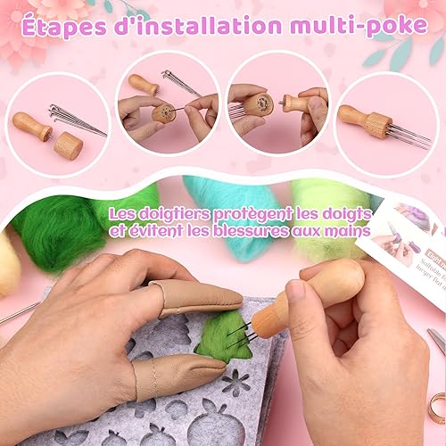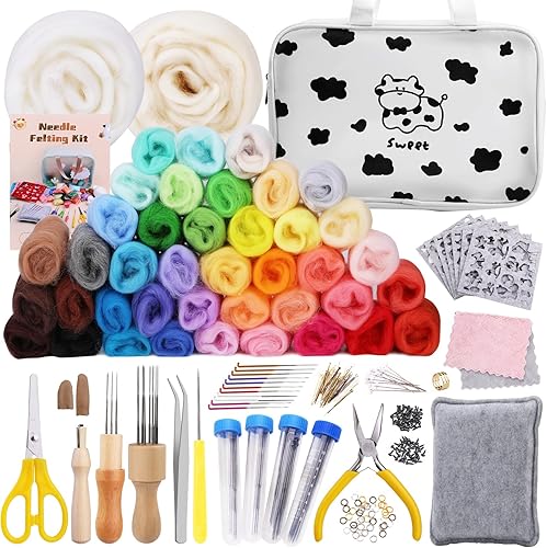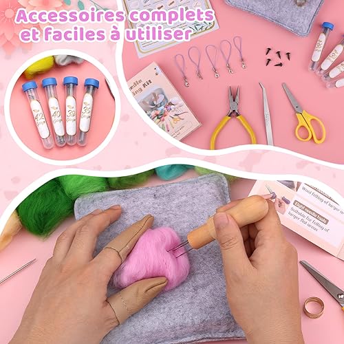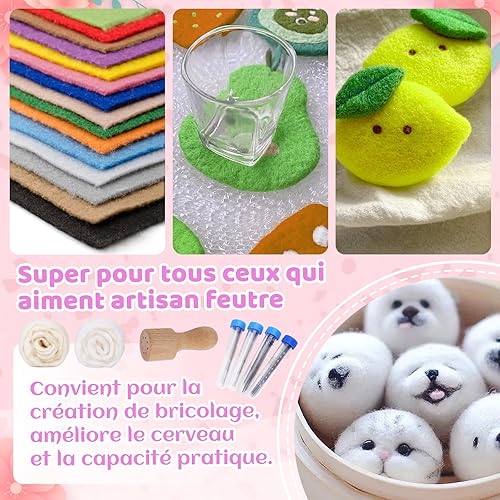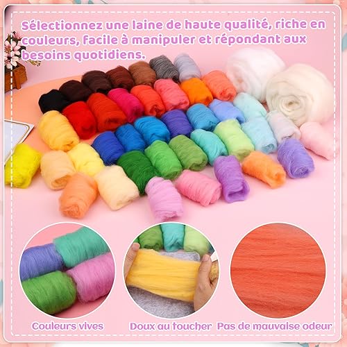 Doxiru Kit de feutrage en laine 42 couleurs Kit de feutrage à l'aiguille avec outil de feutrage et tapis en mousse Fournitures de feutrage à l'aiguille pour le feutrage artisanal bricolage