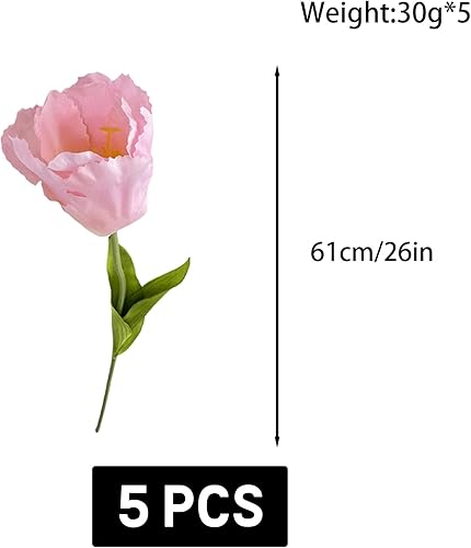 Lot de 5 tulipes artificielles - Rose - Pour loisirs créatifs, fête de mariage - 4801
