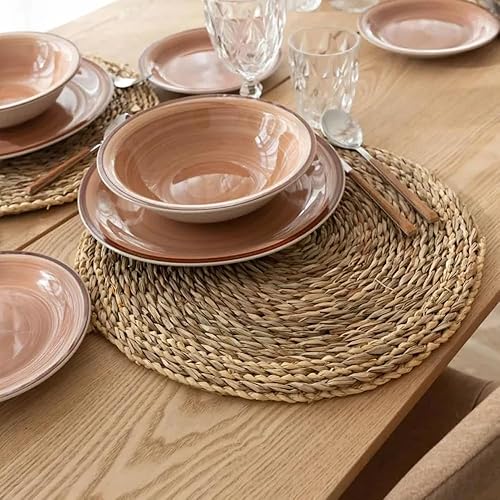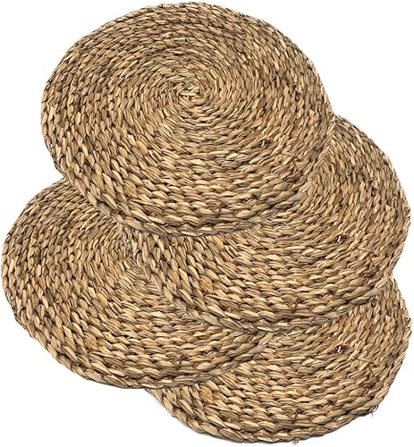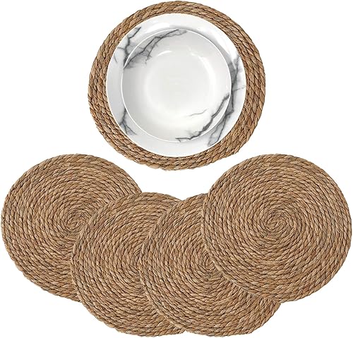 MGE - Ensemble de 4 Dessous De Plat - Set de Table en Osier - Dessous de Plat - Table Ronds Résistants à la Chaleur Tressés - Support de Pot, Antidérapant, Durable - 30 cm