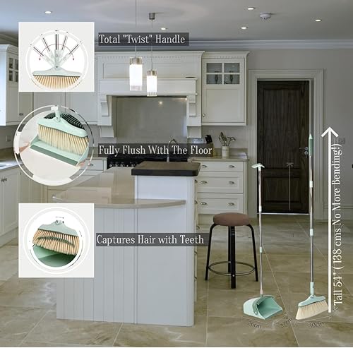 EVENT! SWISSPACK Twist Ensemble pelle à poussière et balayette à long manche de 137,2 cm, balai et pelle à poussière, long manche pour intérieur et extérieur, vert