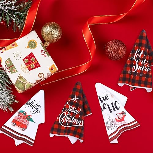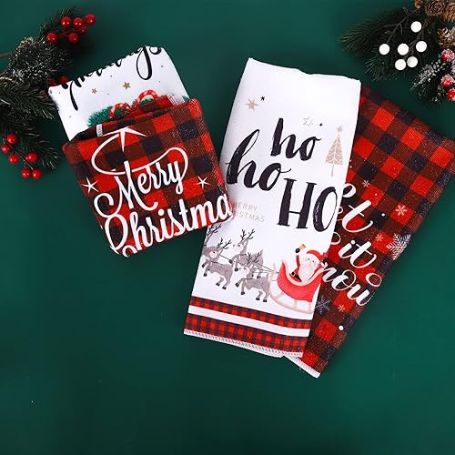 Hileyu Torchons de Noël 4 pièces,40x70cm torchons Microfibres,Serviettes de Cuisine Super absorbantes,Torchons et Serviettes de Bar à Carreaux Joyeux Noël,Torchon Cuisine
