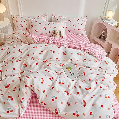 Nesture Parure de lit 135 x 200 cm - 2 pièces - En microfibre - Infroissable et douce - 1 parure de lit réversible et 1 taie d'oreiller 80 x 80 cm - Avec fermeture éclair - Blanc rouge cerise