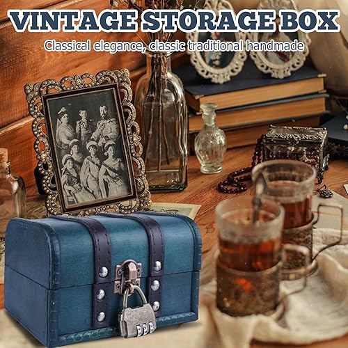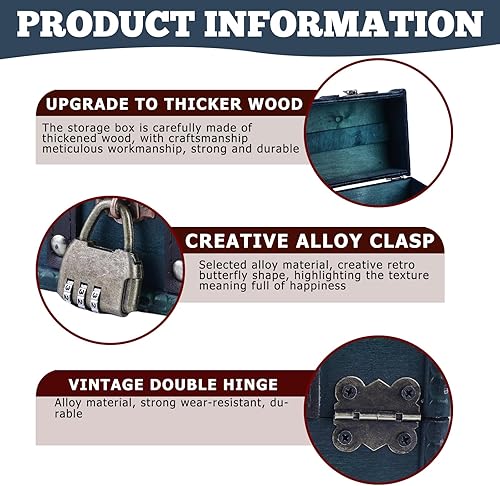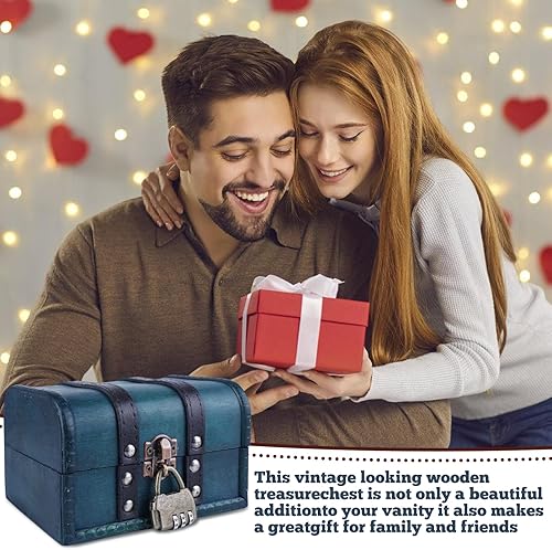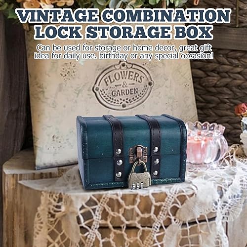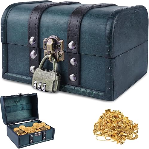 WANDGU Coffre au trésor vintage avec serrure à combinaison : petit coffre au trésor de pirate, boîte à bijoux avec couvercle coffre au trésor anniversaire d'enfant, tirelire avec serrure, cadeau fait