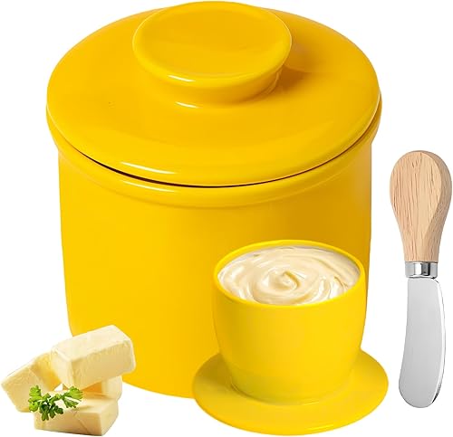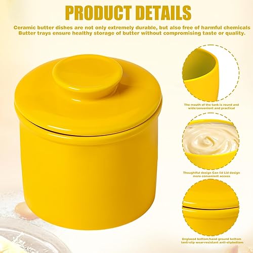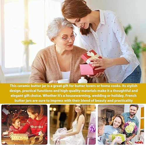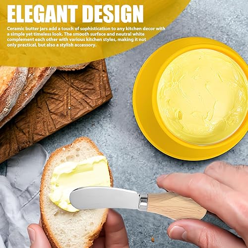 WANDGU Pot à beurre en porcelaine 9,8 × 7,6 cm : pot à beurre en porcelaine, pot à beurre en porcelaine, beurrier français en porcelaine, beurrier français avec couvercle pour comptoir de cuisine