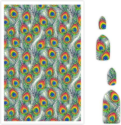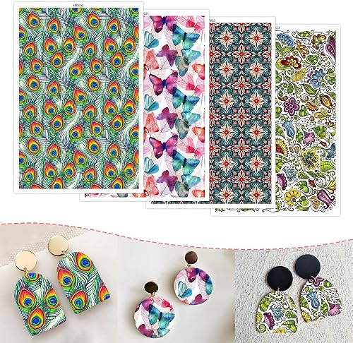 Lot de 10 feuilles de transfert à l'eau pour argile polymère, motif plumes de paon pour fabrication de bijoux et boucles d'oreilles, 15 x 9 cm