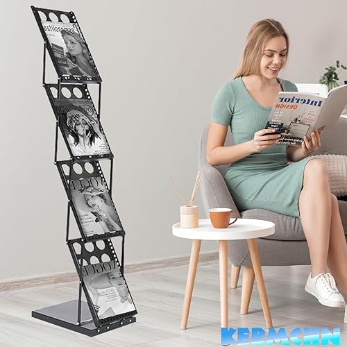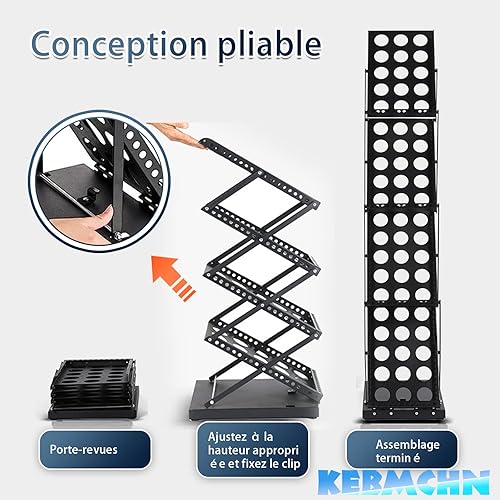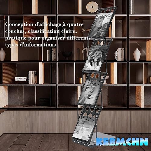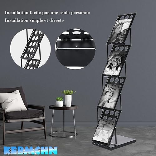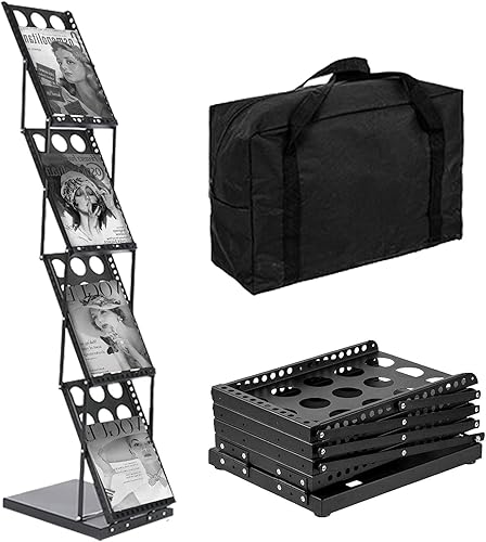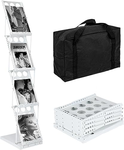 KEBMCHN Présentoir à catalogue de brochures A4, Porte-Brochures sur Pied 4 Niveaux, Support de magazine, portable, en métal, noir, design perforé avec sac, support pliable pour magazines Blanc
