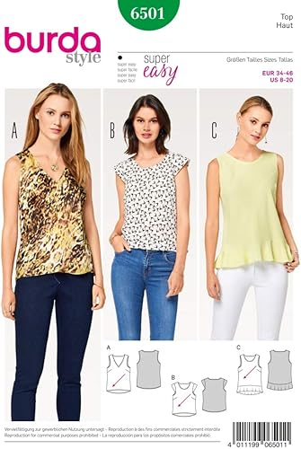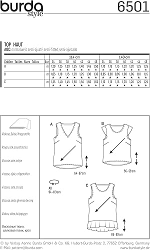 Burda - 6501 - Patron de couture - Top col en V et ourlet volant (femme, taille 34-46) - Niveau de difficulté : 2