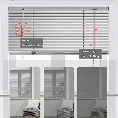 Volets de traitement de fenêtre argentés, stores vénitiens en métal d'aluminium, sans perçage, assombrissement de la pièce, rideaux faciles à installer, for la cuisine du bureau à domicile, couleur/ta