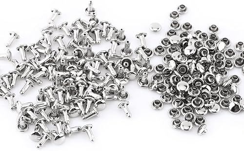 Walfront 100 Sets Rivet Cuir Rivets Double Calotte en Métal pour DIY Bricolage Accessoires 6x8mm Rivet Couture Rivet Tubulaire (Argent)