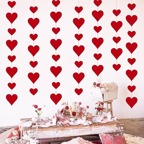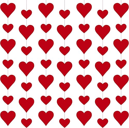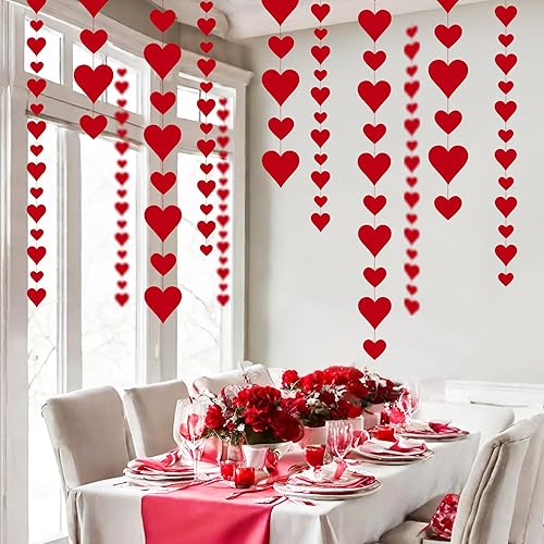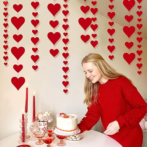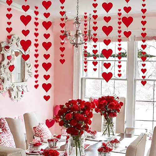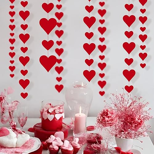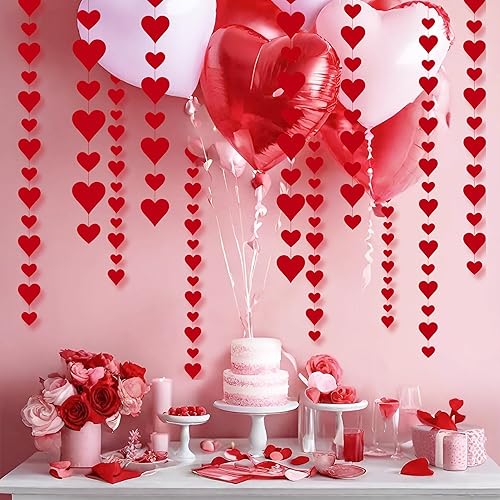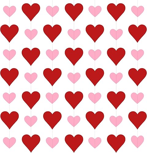 Lot de 4 guirlandes de cœurs en papier à suspendre pour Saint-Valentin, anniversaire, fête prénuptiale, mariage, fiançailles, anniversaire de mariage (rose)