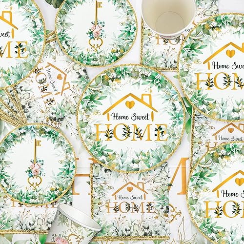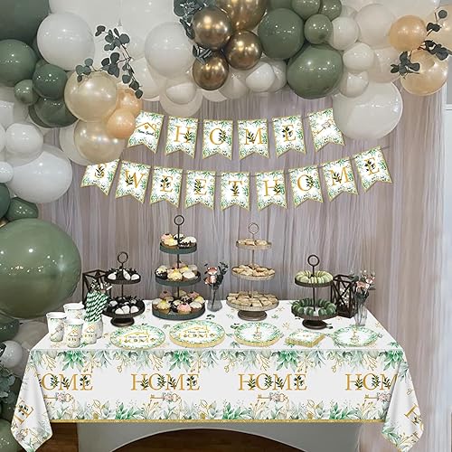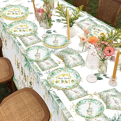 Lot de 102 décorations de fête pour pendaison de crémaillère – y compris assiettes et serviettes, tasses, bannière de bonbons, nappe pour la maison, fournitures de décoration pour la maison, pour 20