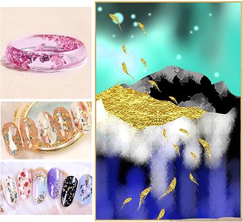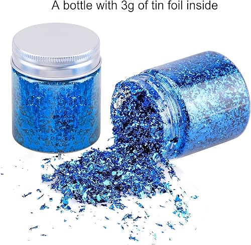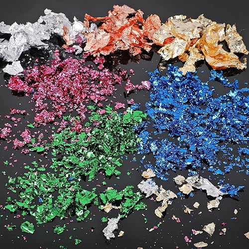 Feuilles d'or 6bouteilles, Gold Leaf Gold Foil Paper Metallic Foil Flakes, Feuille d'Imitation d'or/d'argent/d'or Rose/Bleu/Vert/Rose Rouge pour dorure, Peinture, Résine, travaux Manuel, Ongles