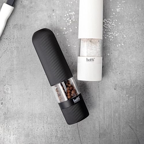 Botti Sorento moulin à gravité électrique | Blanc | Préserve la pleine saveur | Mouture réglable | Utilisation facile à 180 degrés | Éclairage avec capteur d'inclinaison | Plastique durable