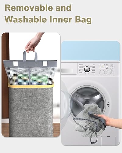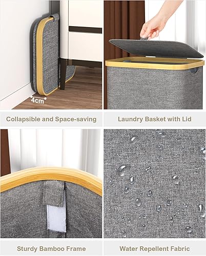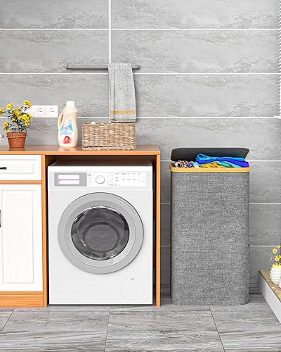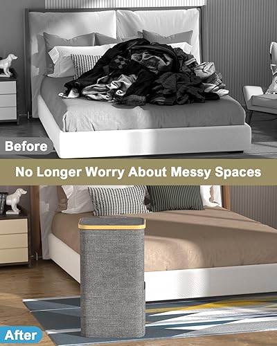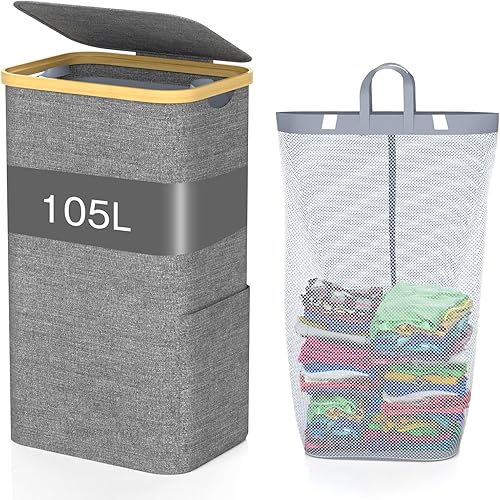 GLOWPOINT 105L Panier à linge avec couvercle, grand paniere a linge sale avec sac intérieur amovible, Oxford résistant à l'eau, bac à linge pour la chambre, la salle de bain, la buanderie, Gris