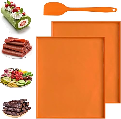 2 Pièces Plaque Genoise, 25 X 30 cm Tapis à Gâteau Roulé Suisse avec Spatule, Antiadhésives Plaque Silicone Feuilles de Déshydrateur en Silicone avec Bord pour Cuirs de Fruits, Rouleaux de Gâteaux