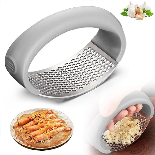 2024 Nouveau Presse-ail à Bascule en Acier Inoxydable, Presse-ail en acier Inoxydable, Appareil de Cuisson, Coupe-ail à Bascule(gris)
