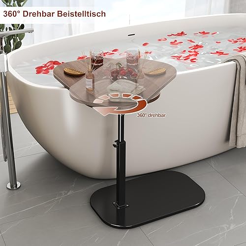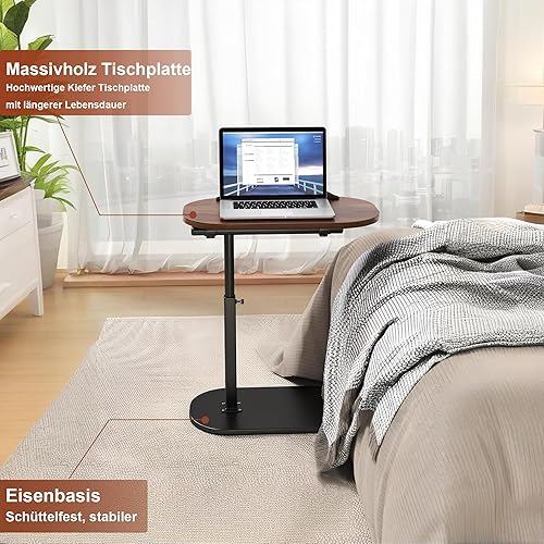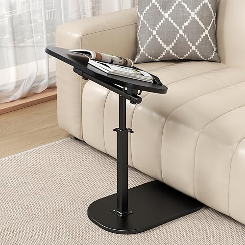 Table d'appoint en Forme de C, Table canapé en Bois Massif réglable en Hauteur pour Salon et Chambre à Coucher, 360° pivotante Petite Bureau Debout pour Ordinateur Portable, Base Métallique(Noir)
