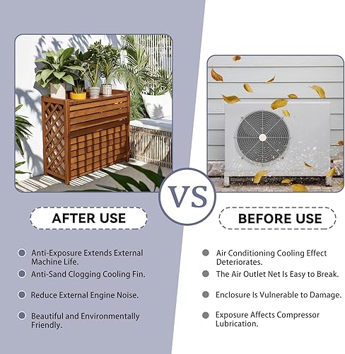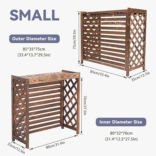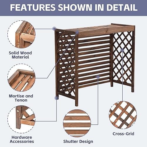 Marron Cache Climatiseur Exterieur Bois Cache Clim Bois Protéger du Soleil Et De La Pluie Support Plante Extérieur pour Cacher Climatisation Etagere Plantes Exterieur pour Décoration Jardin(S)