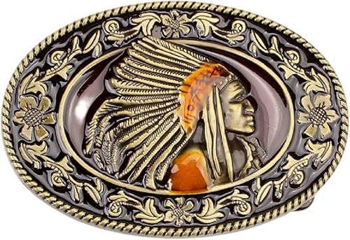 Boucle de ceinture de chef indien amérindien pour hommes, Boucle de ceinture en filigrane à tête de chef de guerrier tribal indien, Boucle de ceinture de cowboy occidental punk rock