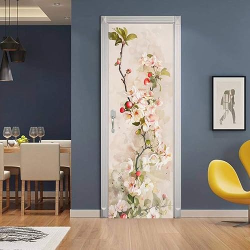 Stickers Porte Blanc Sticker Porte Trompe l'oeil Fleurs Blanches Papier Peint Auto Adhésif, PVC Imperméable Poster Autocollants pour Salon Cuisine Chambre Salle de Bain 85 x 200 cm E899