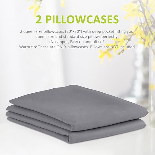 Duractron Lot de 2 Taie d’oreillers 100% Microfibre Super Douceur, Anti-acariens et Hypoallergénique, 50 cm x75 cm. (Gris)