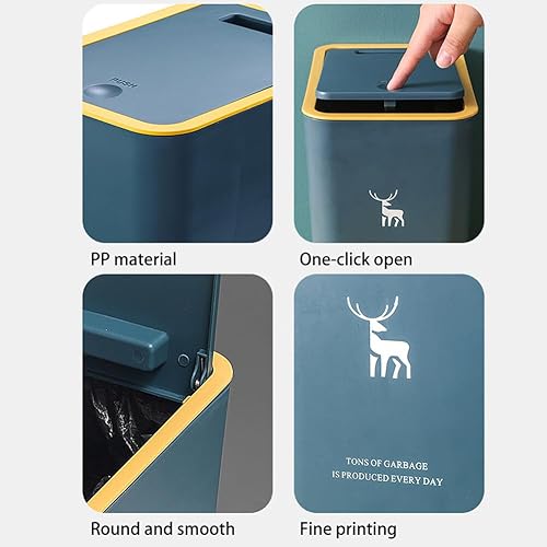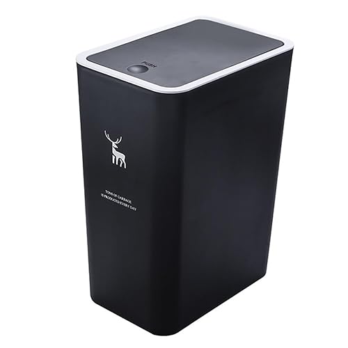 STETHI Poubelle de table avec couvercle, en plastique, 15 litres, poubelle portable pour cuisine, coiffeuse, chambre, comptoir (34 cm x 25,5 cm x 17,5 cm) (noir)