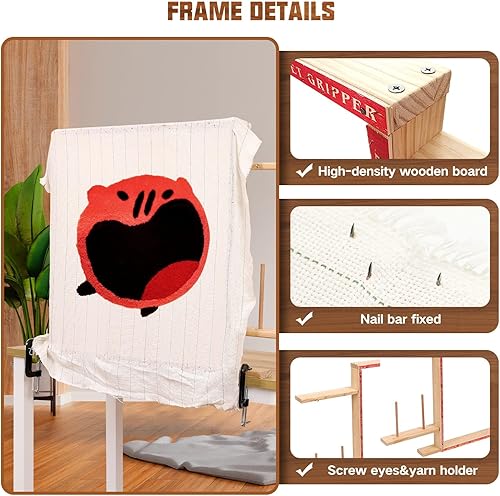 Riiai Cadre touffeté 75 cm, 29,5 'x 29,5' Tufted Rack pour Faire des Tapis; Bois Tufted Rack Tapis Fabrication Fournitures pour Tufted Gun; Desktop Rack Tapis Outils (29,5 'x 29,5')