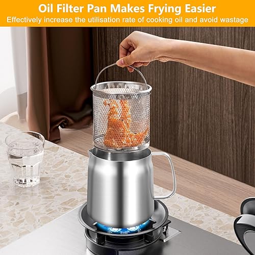 Récipient à graisse en acier inoxydable de 2 l - Réservoir à graisse avec filtre à mailles fines - Récipient à graisse en acier avec tamis à maille fine pour le stockage de l'huile de friture et de la