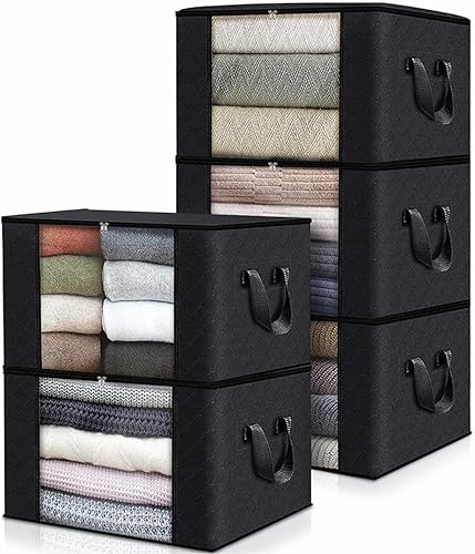 Dottall Lot de 5 Grand Sac de Rangement sous lit, Vestes organisateurs avec Poignée Renforcée, pour Couettes Vêtements Couvertures Oreillers et Jouets (60 x 43 x 35 cm)