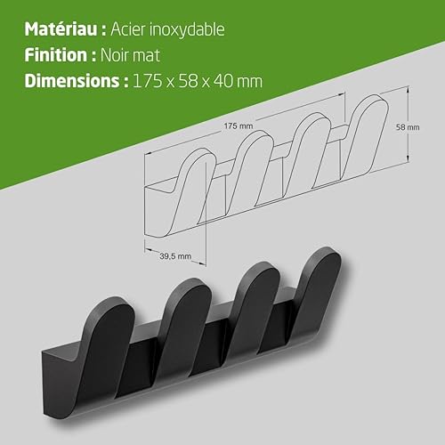 Amig - Patère de salle de bain Mod. Oma-7 | Crochet mural avec vis incluses | 175 x 58 x 40 mm | Zamak | Noir mat