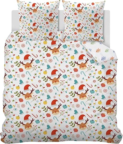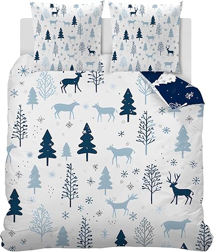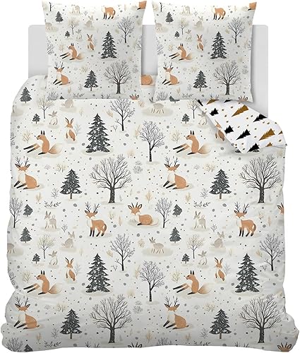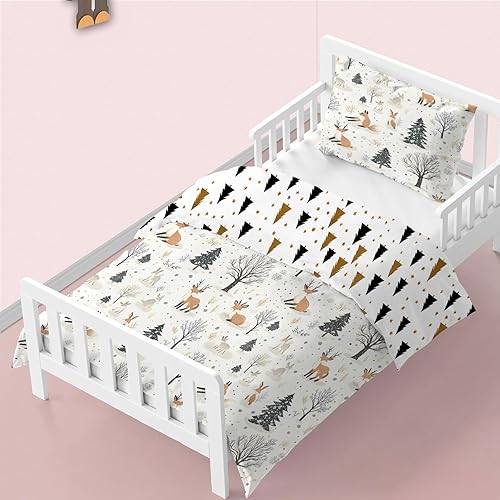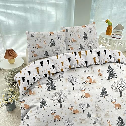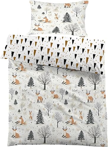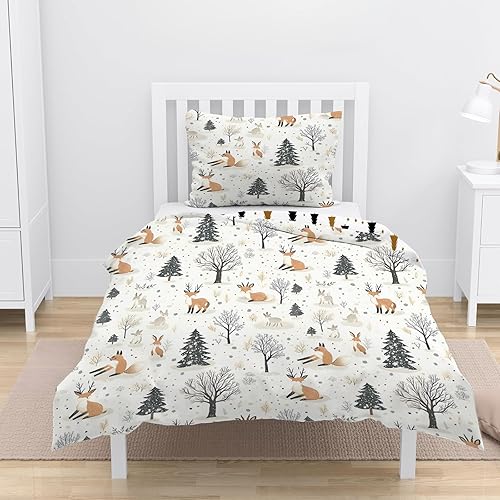 Housse de Couette 120x150 cm Enfant Animaux de la forêt, Parure de Lit 1 Personne Renard Renne avec Taie d'oreiller 40x60 cm Réversible Sets de Housse Couette en Microfibre Ensemble de Literie