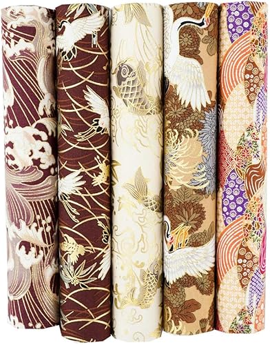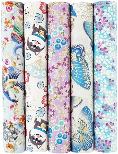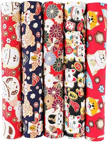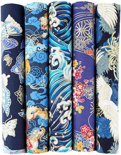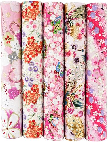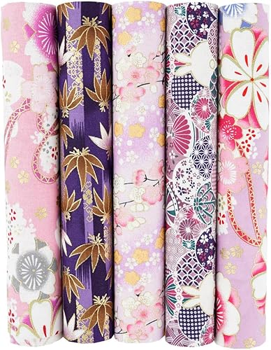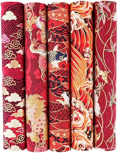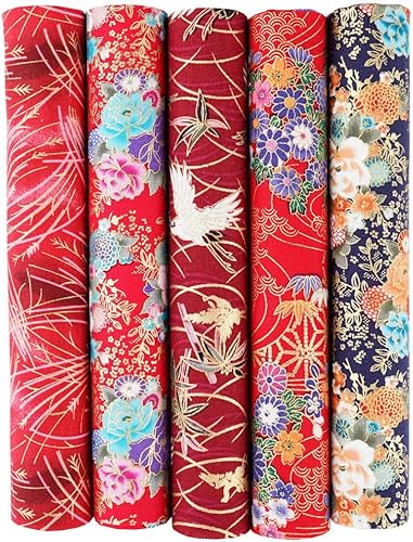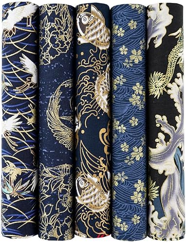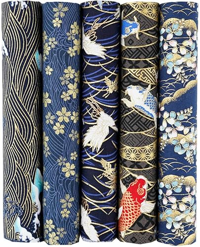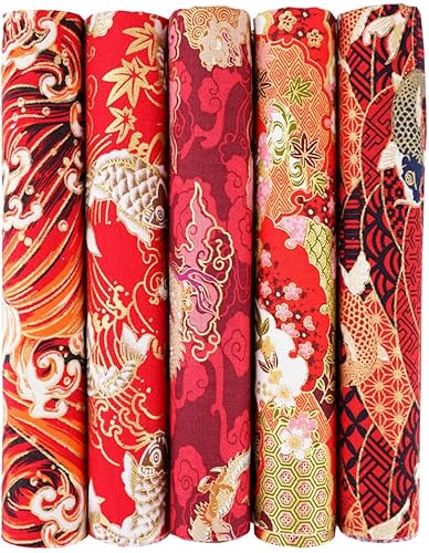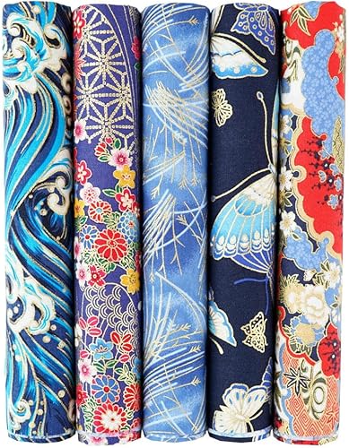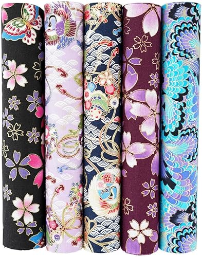 QIUMING Lot de 5 Tissus Japonais en Coton carrés de 25 x 25 cm/50 x 50 cm pour Loisirs créatifs, Patchwork, Quilting, Couture, Artisanat