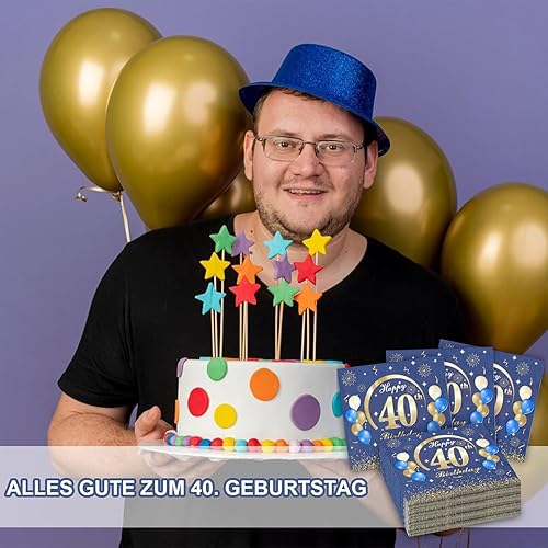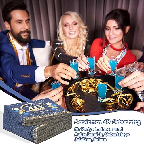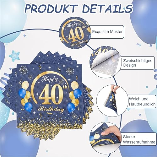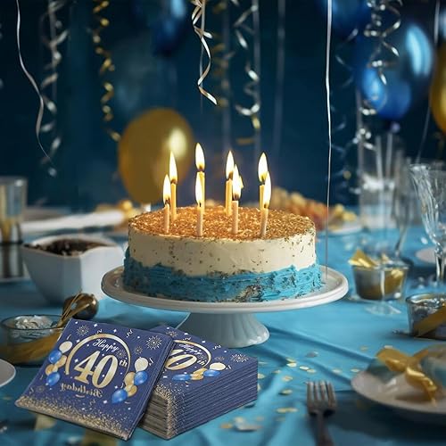 Lot de 60 serviettes en papier décoratives pour 40e anniversaire - Bleu - 33 x 33 cm - Pour homme et femme - 40 ans