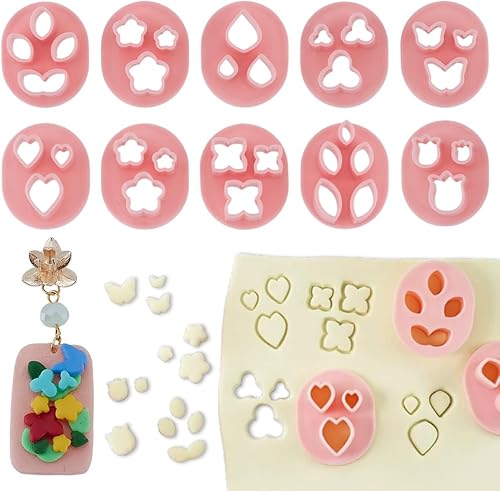HOBBIESAY 10 styles emporte Pièce en Pâte Polymère pour la Fabrication de Boucles D'Oreilles Mini Fleurs Feuilles Cœurs et Papillons Outils pour la Fabrication de Bijoux et de Boucles D'Oreilles