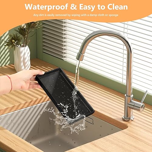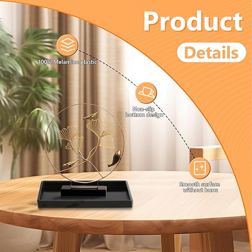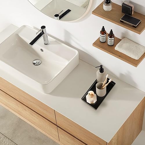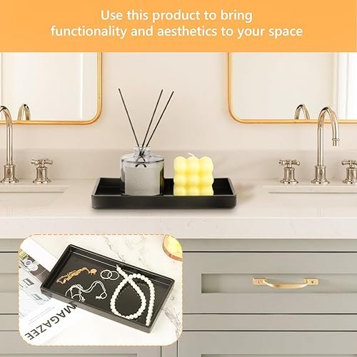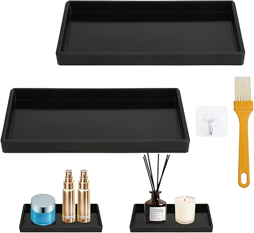 Lot de 2 plateaux de salle de bain en plastique noir - Plateau de coiffeuse rectangulaire avec 1 crochet et 1 brosse - Pour salle de bain, coiffeuse et cuisine
